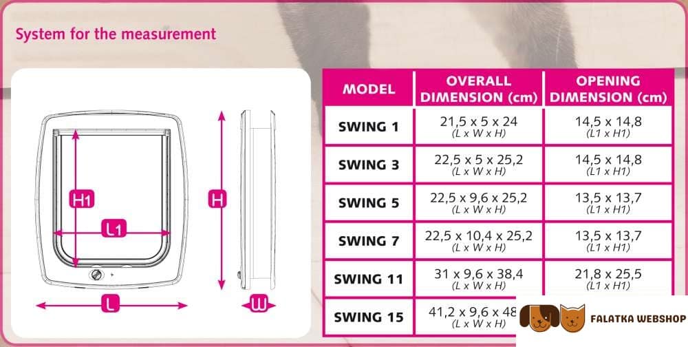 Mágneses kulcsrendszer: egy kicsi és ügyes jelző a nyakörvre erősítve. A mágnes kinyitja az ajtót amikor a kedvence a közelébe ér (Swing 7 típusnál).