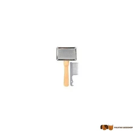 Trixie tükrös kefe fa nyéllel, puha fém sörtékkel. A kefetisztító fésű tartozék!